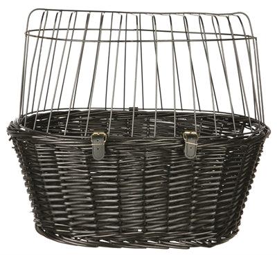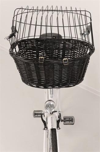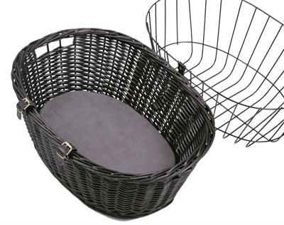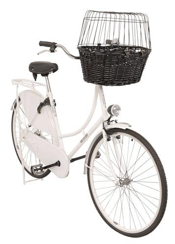 Procura uma forma elegante e segura de levar o seu cão ou gato na bicicleta? O cesto dianteiro Trixie Willow para bicicleta, em preto, combina um design clássico com praticidade. Esta luxuosa cesta é feita de vime entrançado preto e possui uma cobertura de arame resistente, permitindo que o seu animal de estimação viaje com segurança e conforto – ideal para viagens diárias ou viagens de bicicleta.