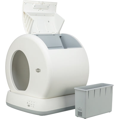 A caixa de areia autolimpante Trixie, em plástico branco (53 x 52 x 55,5 cm), é prática e mantém a limpeza automaticamente graças à sua rotação. Esta caixa de areia automática e autolimpante é a solução ideal para todos os donos de gatos! O tambor gira automaticamente após a utilização e o processo de limpeza pára automaticamente quando o gato chega. Utilize areia aglomerante nesta caixa. Ao rodar, as partículas sólidas, como fezes e torrões de areia com urina, caem no recipiente de resíduos. O recipiente pode ser utilizado com ou sem saco de lixo. A operação e a limpeza do tambor são muito fáceis.