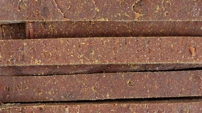 Composição: cordeiro, pato, glicerina, amido, sorbitol, proteína vegetal, farinha de trigo, sal, alho em pó, corantes aprovados pela CE.